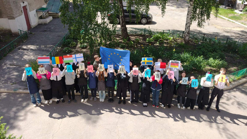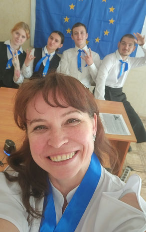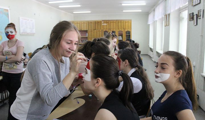 У травні 2018 року ми вирішили влаштувати флешмоб з розмальовування обличчя учнів кольорами прапорів ЄС. Учні погодились і з ентузіазмом заходились працювати.